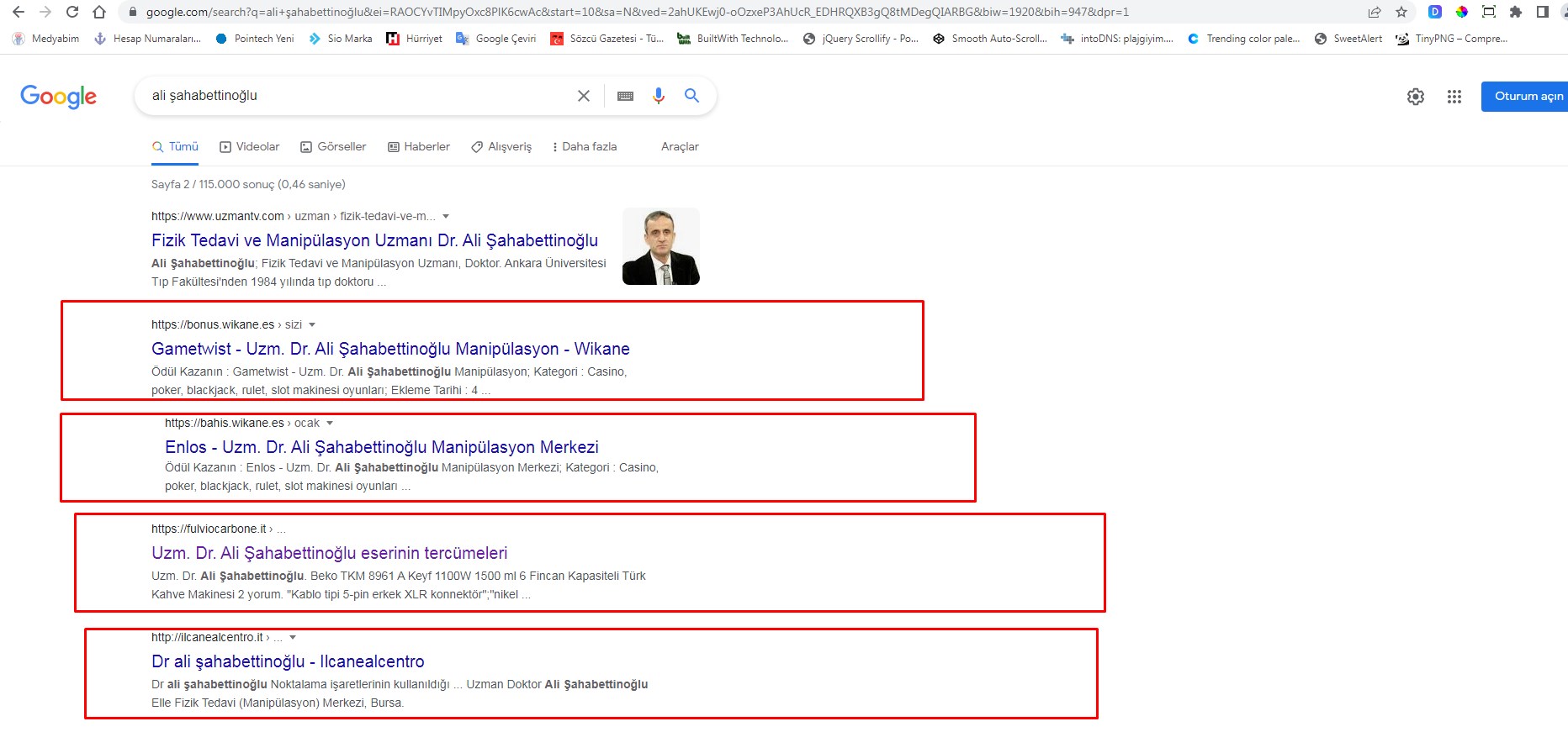 Merhaba arkadaşlar google aramalarında manuelinternational kelimesini arattığımda alt sıralarda bahis sitelerine yönlendirmeler çıkmaktadır. Domain adresi şu şekilde geçmektedir www.manuelinternational.com. Fakat manuelinternational yazdığımızda alt sıralarda bahis sitelerine yönlendirmesi yetmezmiş gibi birde bu site bir doktora ait bunun adını soyadını yazdığımızdada aynı şekilde alt sıralarda yine bahis sitelerine yönlendirmeler çıkıyor. Böyle bir sorun yaşayan daha önceden oldu mu bu konuda yardım ve fikirlerinizi bekliyorum sorun tam olarak nerede olabilir site kodlarında her hangi bir sorun görünmüyor.